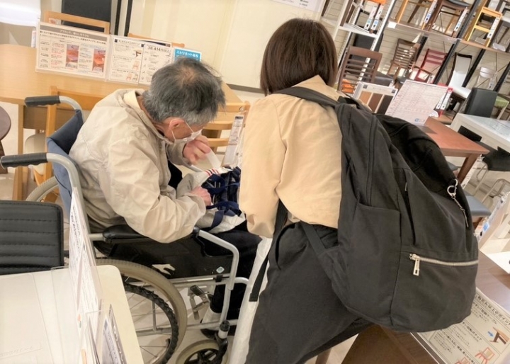 お昼休憩をはさみ、午後からはテーブルセットとレースカーテンを購入するために近くの家具屋へご同行しました。